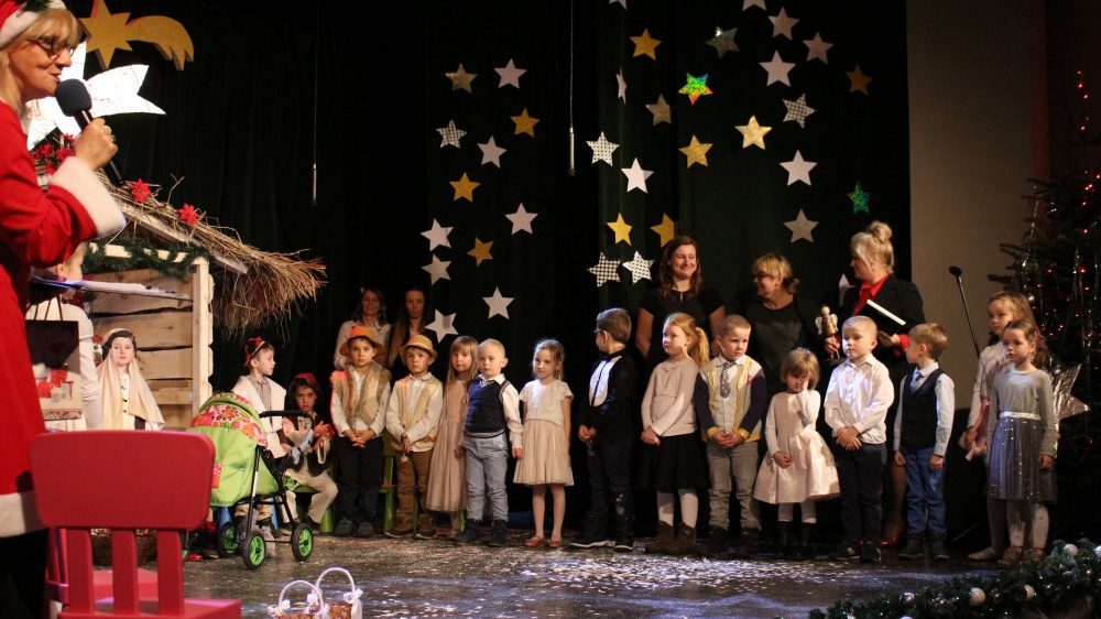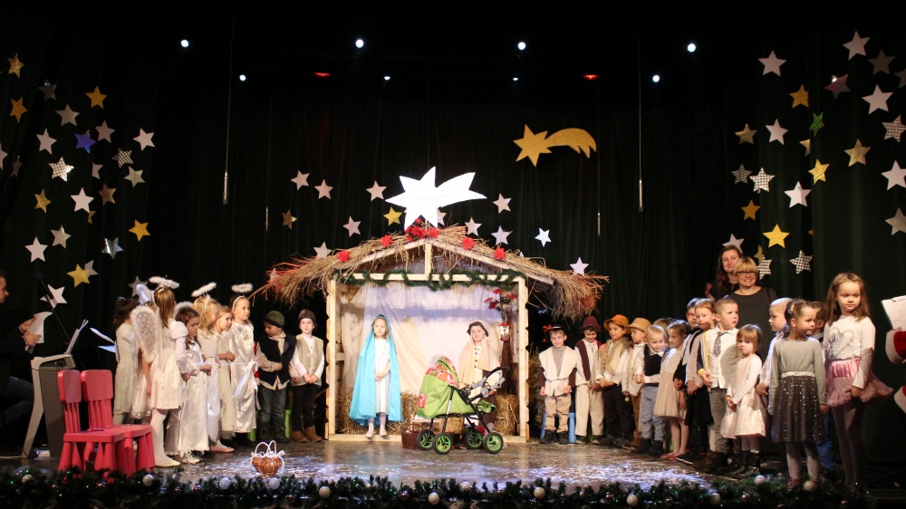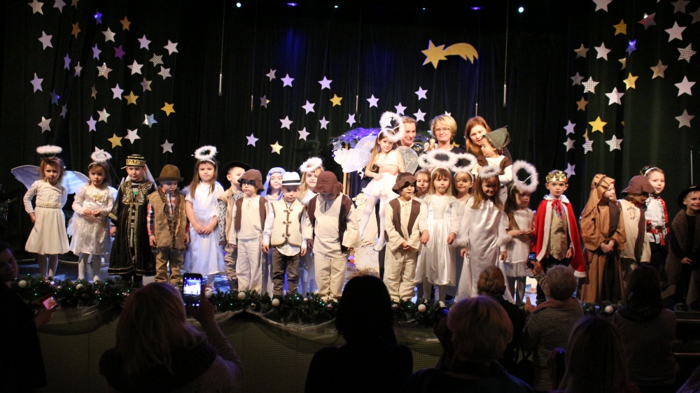 Przedstawiamy fotorelację z I Przedszkolnego Przeglądu Jasełek, który odbył się 12 grudnia w Ośrodku Kultury. Łącznie na scenie wystąpiło 8 grup z przedszkoli z terenu gminy. Trzeba przyznać, że wszystkie dzieci występowały fantastycznie, a spektakle zaskakiwały różnorodnością i pomysłowością. Jury w składzie Hanna Sęk, Hanna Sowa i Klaudia Kulak miało trudne zadanie przy wyłonieniu zwycięzców Przeglądu. Uroczystość poprowadziła Pani Bogusława Błoszyk. Zapraszamy do obejrzenia zdjęć.
