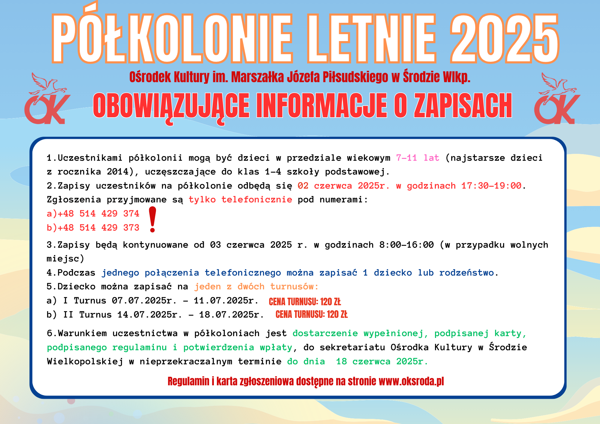 Z przykrością informujemy, że wszystkie miejsca na półkolonie 2025 Rycerze i Królewny zostały już zajęte.